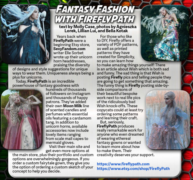 But, seriously, FireflyPath produces really remarkable work for anyone who even dreamed of wearing ethereal fantasy gowns or wanted to learn more about how to make them. Their creativity deserves your support.