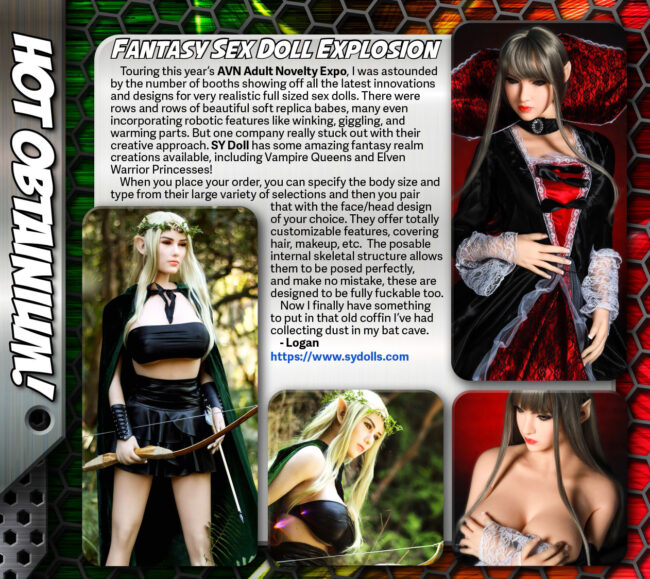 Touring this year’s AVN Adult Novelty Expo, I was astounded by the number of booths showing off all the latest innovations and designs for very realistic full sized sex dolls. There were rows and rows of beautiful soft replica babes, many even incorporating robotic features like winking, giggling, and warming parts. But one company really stuck out with their creative approach. SY Doll has some amazing fantasy realm creations available, including Vampire Queens and Elven Warrior Princesses!
