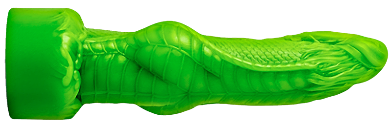 Mr. Hankey’s toys has some of the best sculpted designs in the genre and I love their latest addition to their fantasy dragon collection. Behold the Knaughty Dragon, with its girthy straight shaft and its bulbous swollen knot, perfectly placed near the base of the shaft, but with a little room to spare. The intricate detail of the sculpt is what really sets this one apart, I mean, it’s got a great silhouette but the texture is truly next level. It’s got beautiful scales and snake skin details, with veins and fur and horns. A total work of art. If I were to pick an occasion for the Knaughty Dragon, I think an adventurous pegging session at your next Convention would be ideal, with appropriate cosplay of course. Its design shape is really perfect for strap-on harness play, and I love the placement of those bulging knots on either side of the shaft for that amazing little push at the end of the thrust. Oh, and it comes in four sizes! One thing I did want to bring up though, is that it’s really valuable to order some texture samples so you can get a feel before committing to high end toys. Most companies offer them at very affordable prices and they really reduce the risk of getting the perfect toy and having it too hard or too soft for your taste. I got the Knaughty Dragon in Extra Firm and I can feel EVERY detail, which can be a little intense. Fortunately, I like it like that, but it’s a lot for some folks and Hankey’s Extra Firm is exactly that.