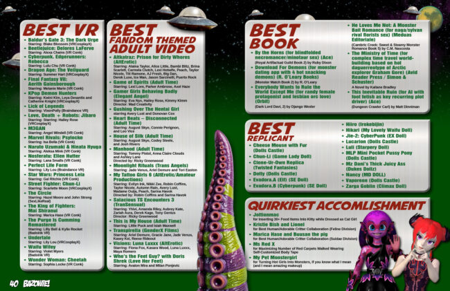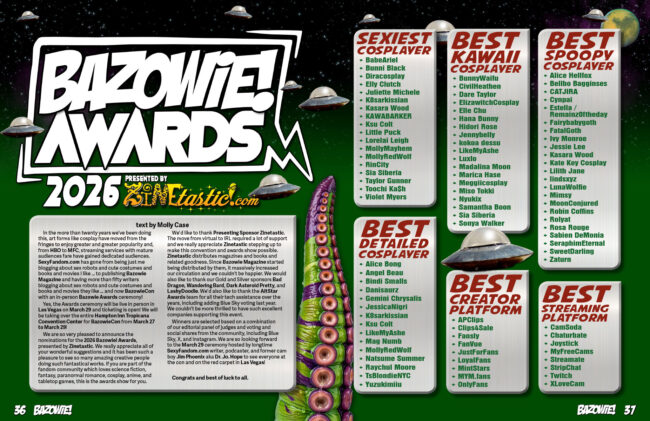 This issue also serves as the program guide for the Bazowie! Awards, presented by Zinetastic and lists all the Bazowie Awards nominees.