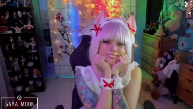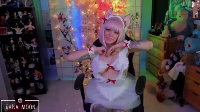 It’s fun and it is interesting, and the twinkly lights with a cascade effect behind her illuminate the grace of her poses, some of which happen to unveil just a little more, like sharing a secret that shows no other items of clothing exist underneath the apron bits, which presents a sweet opportunity for lots of stunning flashes of beauty that Sara_Skys seizes in ways that enhance the allure of this warm and sexy cam show.