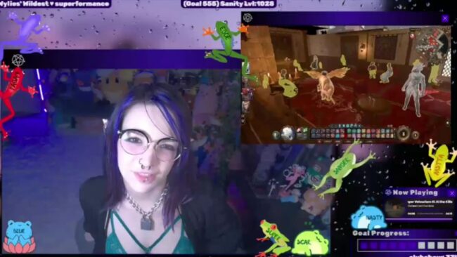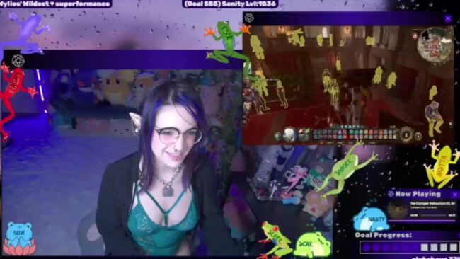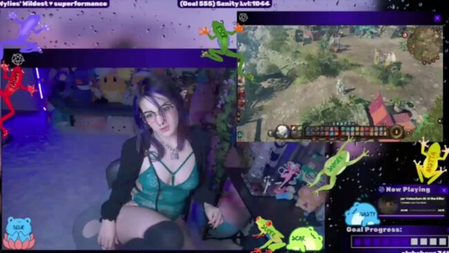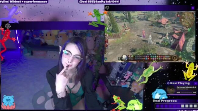 The second thing I notice is that WildWyliePM is playing Baldur’s Gate 3 while wearing cute elf ears, and while the gameplay happens, she takes some tokes and blows the smoke to the camera in a very alluring way while spicier things take place, as she poses showing a bit more of her lingerie, and even gives us a swift and sinful flash as things also start becoming more interesting in the game.