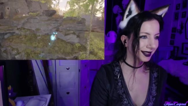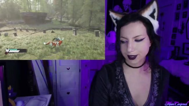 This marvelous stream brings us a gaming adventure with MoonConjured, who today is wearing a very cute dress that she decorates with a pair of fluffy ears on her head.