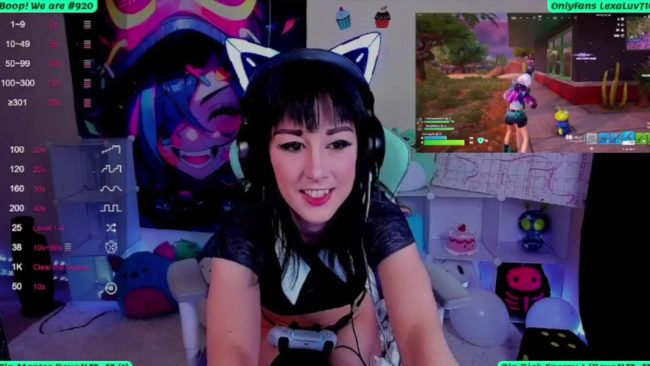 This LexaLuv cam show, to me, is one such moment, where I am absorbing the details of that poster behind her, the sexy outfit she wears, the cute kitty ears from her headset, and the game she plays.