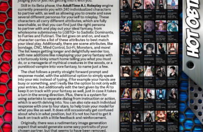 I’ve been having too much fun exploring AdultTime’s recent A.I. Roleplay area. I know AI is supposed to be a dirty word in the world of Fandom these days, but I...